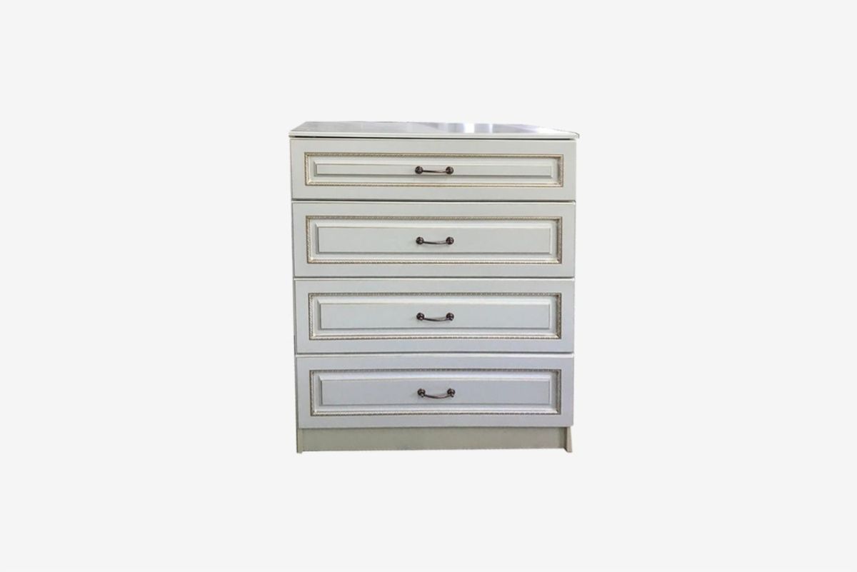 Женева №6 Комод с 4мя ящ. (ЛДСП белый/МДФ софт светлый с патиной золото)
