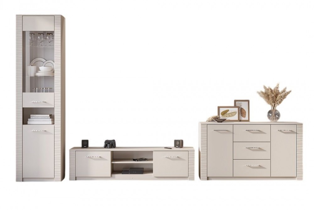 *Цена указана за модули: Комод 3 ящика двухстворчатый, Пенал со стеклом, Тумба для ТВА (1600), Полка навесная (комплект).