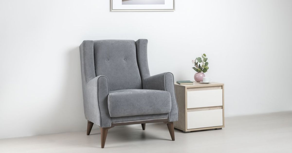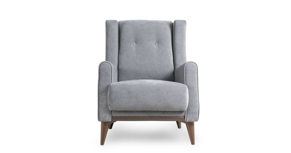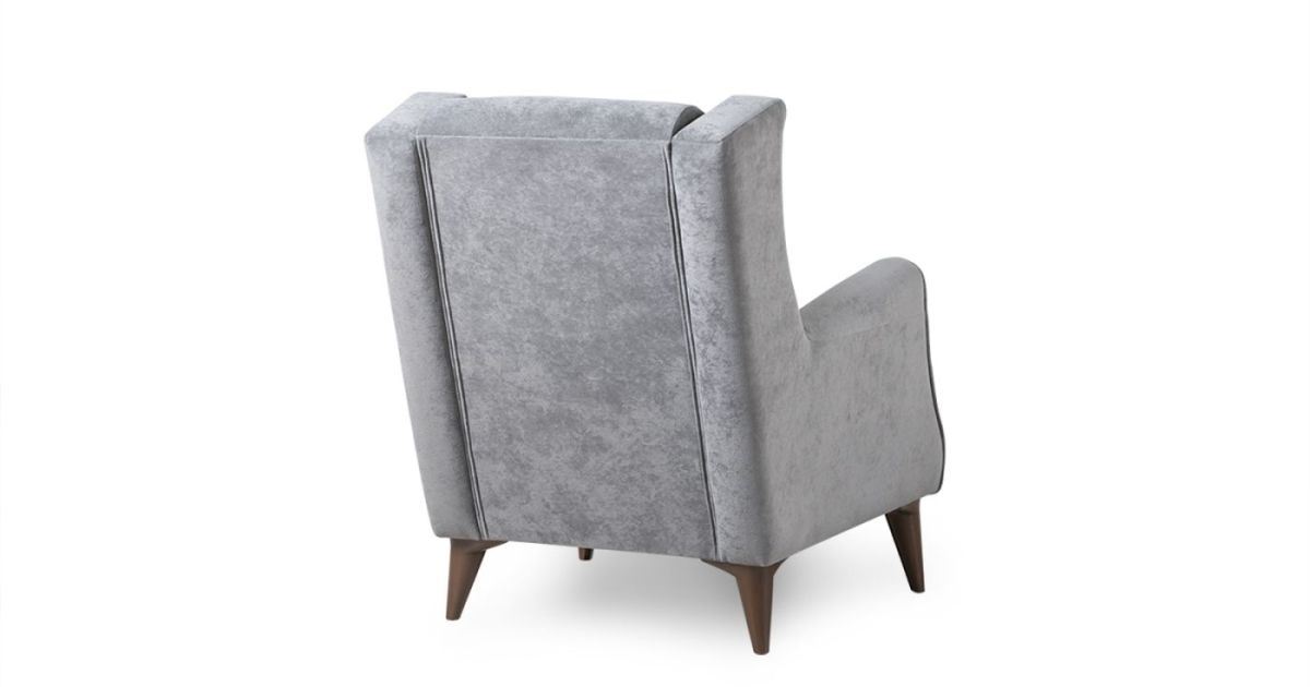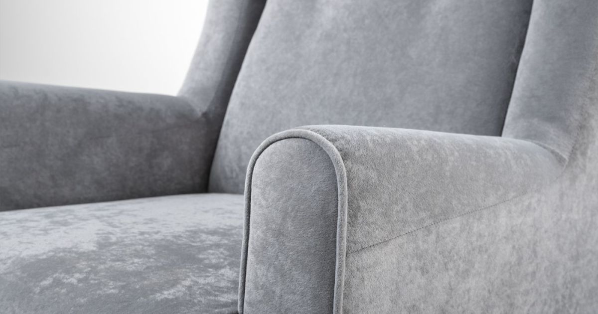 Декор: Декоративный кант из основной ткани по переднему торцу подлокотника; Утяжка спинки на 2 декоративные пуговицы из основного материала; Декоративный элемент царги из материала-компаньона.