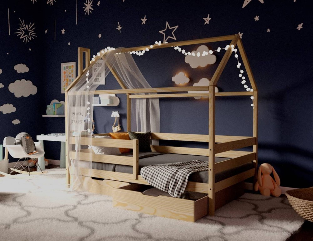 Кровать выполнена из экологичного, цельного массива дерева, а все поверхности кровати ровные и гладкие, безопасные для детей. Для детей кровать — это не только место для сна, но и место для игр и отдыха. Будь то кровать-домик, софа или двухъярусная кровать, которые можно украсить декоративными элементами под вкусы вашего ребенка или дополнить дополнительным местом для хранения.