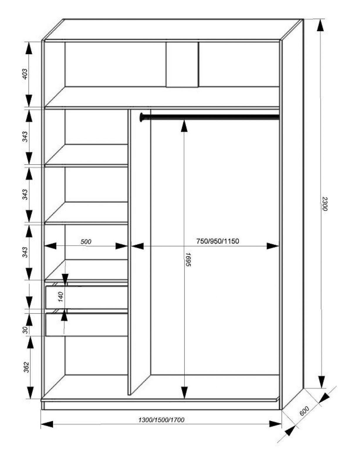 Размеры (Ш*В*Г)(мм): 1700*2300*600