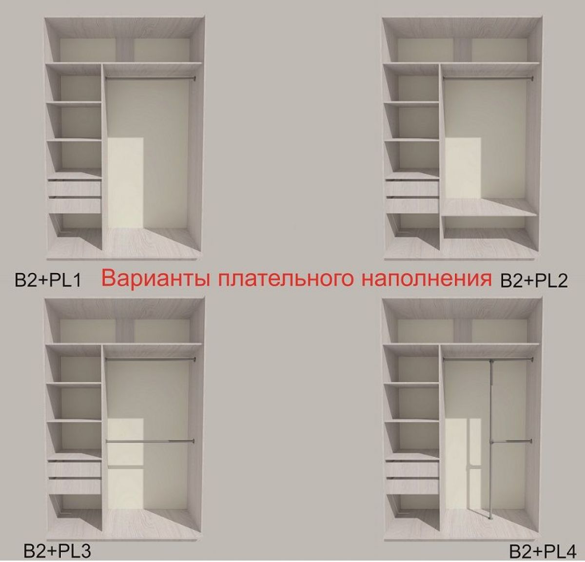 Шкаф-купе 1700 серии SILVER S4+S3Z+B2+PL1 (2 ящика+1 штанга) профиль «Серебро»