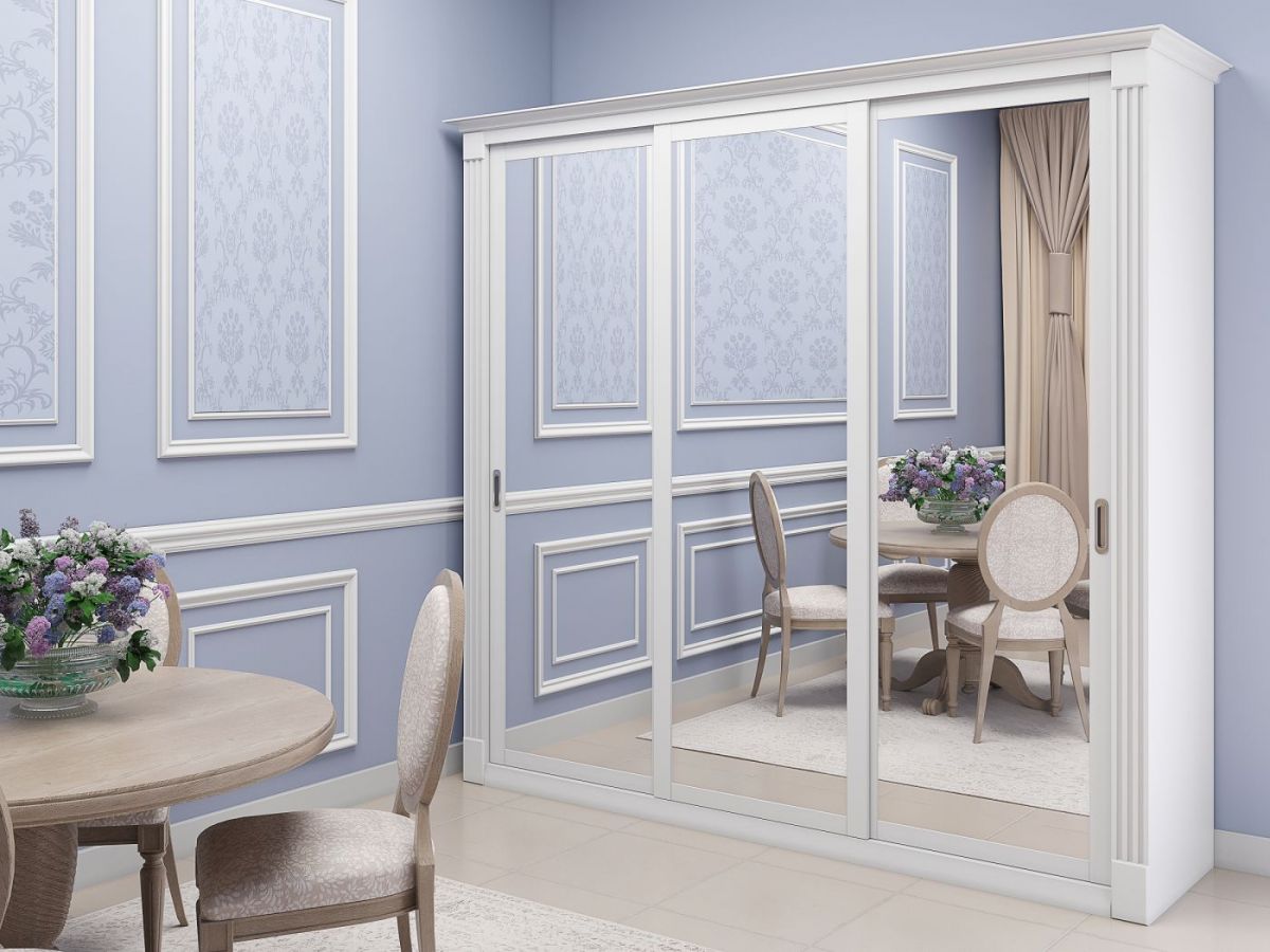 Шкаф-купе 2150 серии NEW CLASSIC K1+K1+K1+B22+PL4 (по 2 ящика лев/прав+F обр.штанга) профиль «Капучино»
