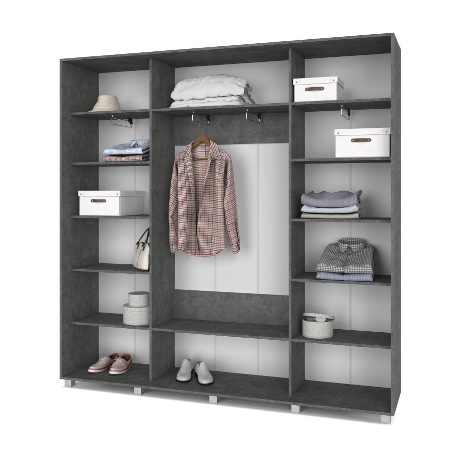 МАРТИН Шкаф-купе с зеркалом Камень темный (2400*450) М442