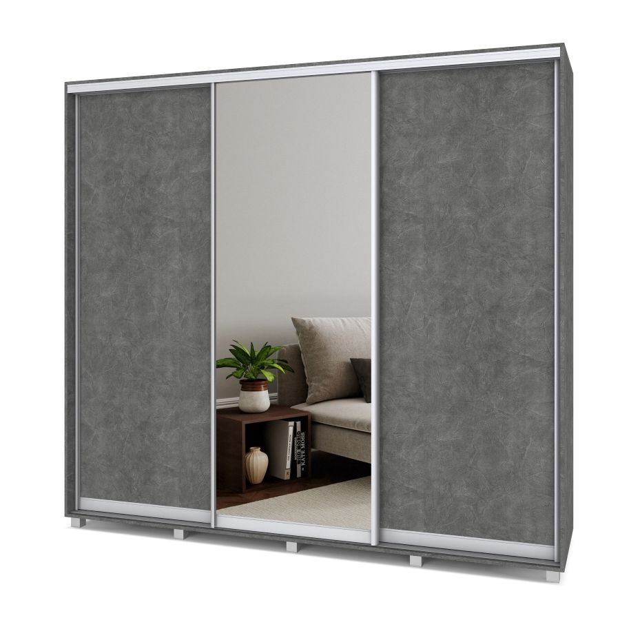 Шкаф купе Мартин с зеркалом Камень темный (2400*600)