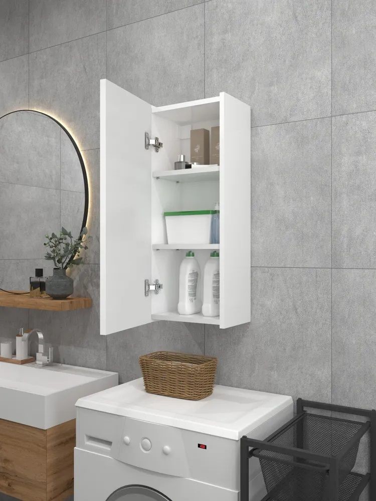 Шкаф навесной для ванной комнаты и туалета MH9-MA 750х300х217 (Белый-М 10.1.1) Белый глянец