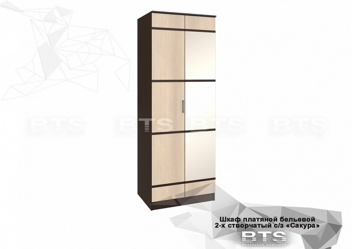 Шкаф 2-х створчатый Сакура + Зеркало (венге/лоредо)