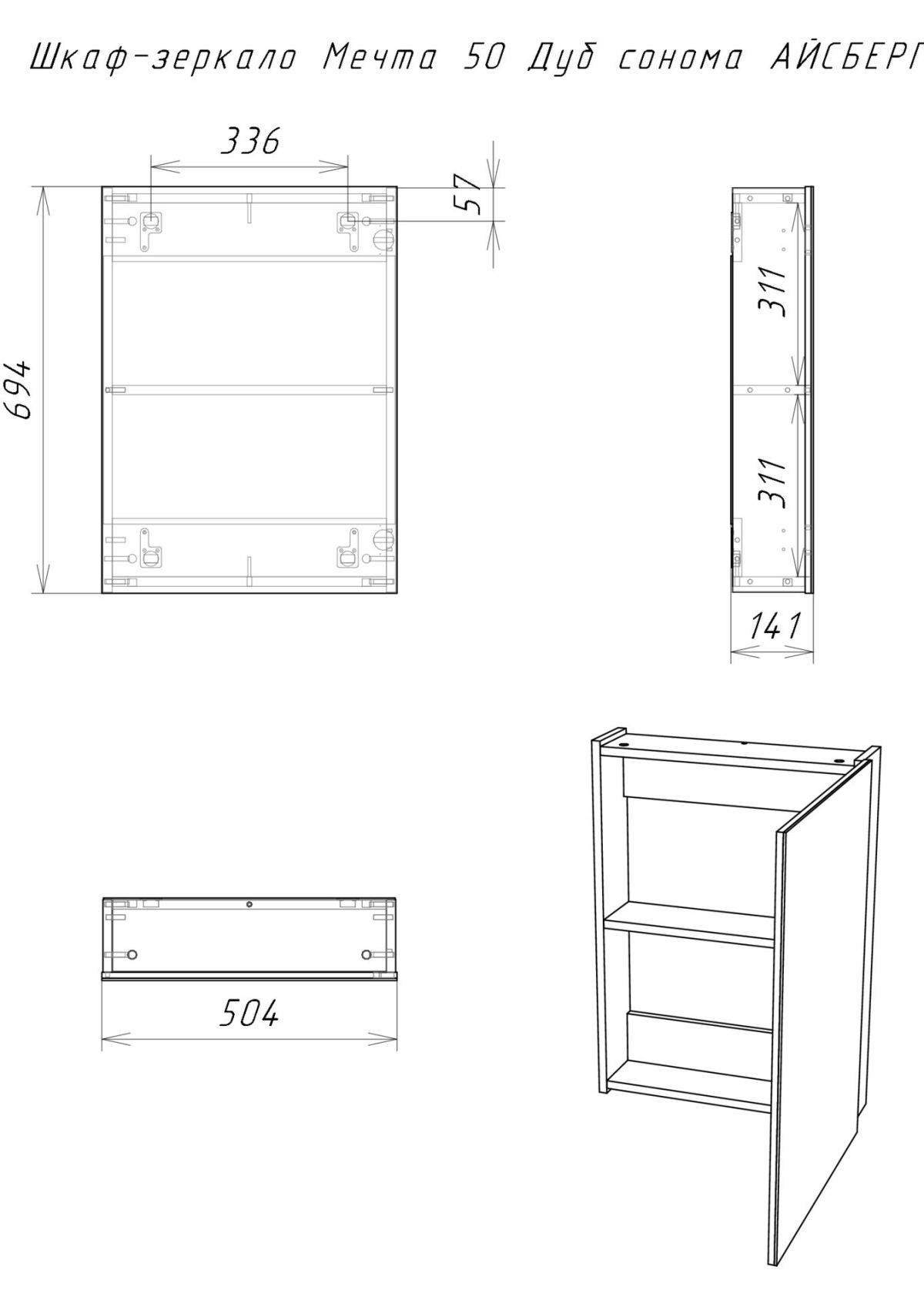 Шкаф-зеркало Мечта 50 Дуб сонома АЙСБЕРГ (DM2318HZ)