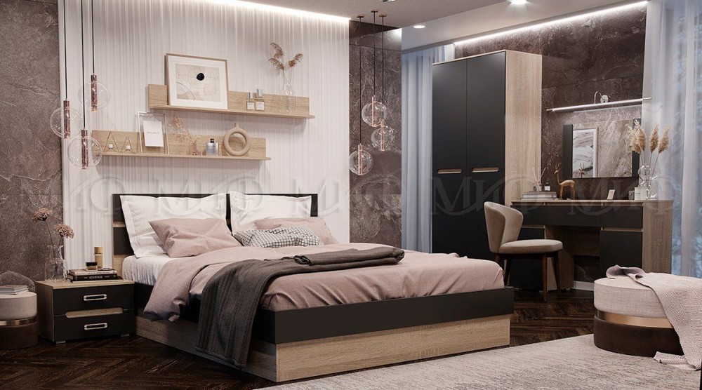 Интернет-магазин "Мебель 24" рад предложить КИМ Спальный гарнитур МДФ (модульный) Графит софт/Сонома по привлекательной цене, от производителя МИФ МК.