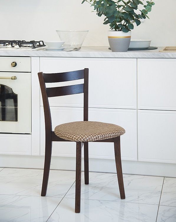 Каркас стула выполнен из массива дерева. Удобная спинка и стильный дизайн.