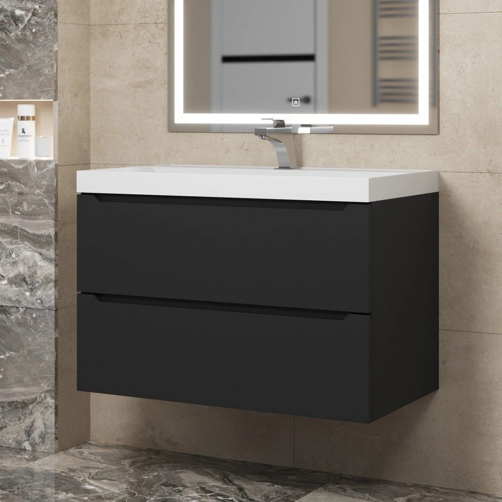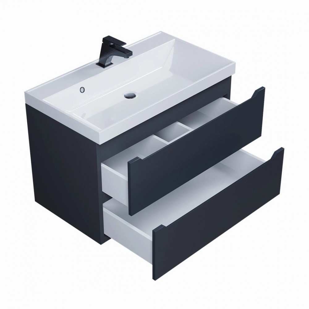 Тумба под раковину Uperwood Tanos 80 см, подвесная, черная матовая